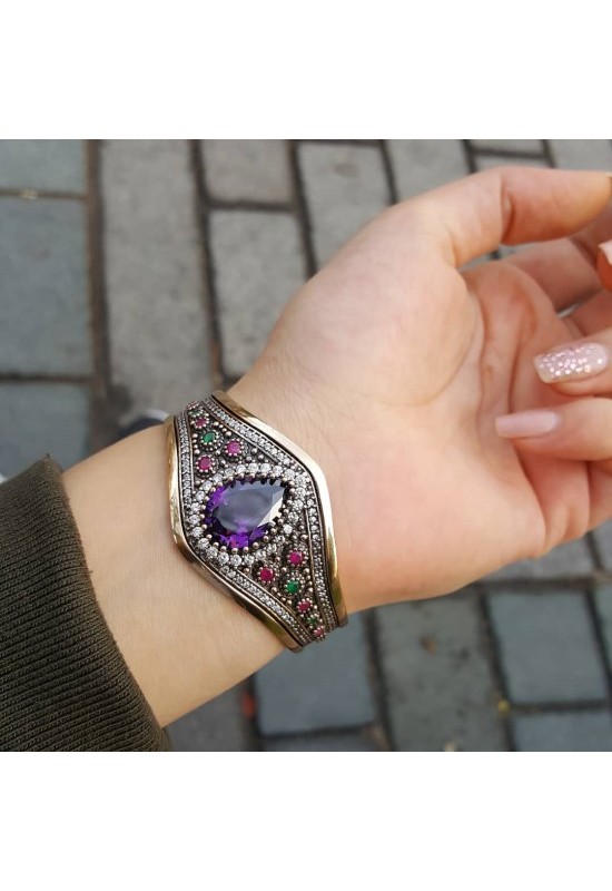 925 Ayar Gümüş Bronz Aleksandrit Taş El Yapımı Bileklik